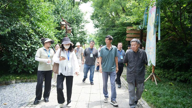 在翠华山感受到了山水诗的魅力后,采风团前往长安唐村体会诗意田园。“漠漠水田飞白鹭,阴阴夏木啭黄鹂。山中习静观朝槿,松下清斋折露葵。”商子秦在这里为采风团成员解读了田园诗的魅力,而在这山清水秀、风光旖旎的唐村,历代田园诗人那份亲近自然的闲适与对美好生活的向往,都寄托在了这绿水青山之间。商子秦盛赞:“长安唐村,烟火原乡,诗意田园,古韵老腔。终南叠翠,云岚茫茫,山如苍海兮碧涛汹涌;润泉牧歌,满目风光,粉荷绽放兮稻谷飘香。”
