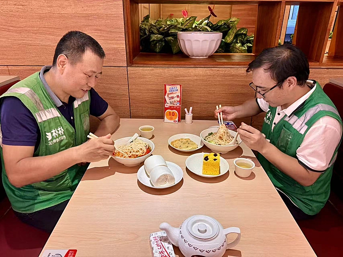“这个面很好吃!我老家是山西的,就是喜欢吃面!”王先生是一名外卖员,在活动开始当天晚上就在一家面点王点了一份10元的套餐,那时他刚送完一单货。“面点王在深圳的门店有很多,以后我送完餐后就可以去附近的面点王吃个套餐。有时候累了我们也可以去暖蜂驿站休息一下。在深圳能感受到很多关爱,让我觉得很暖心。”王先生对记者说道。