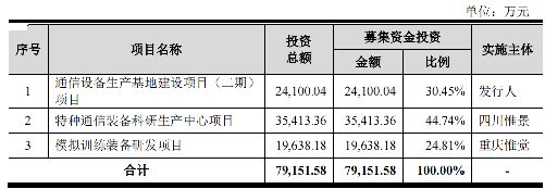 对于此次IPO,六九一二表示,随着公司业务类型的逐步拓宽,承接订单及启动研发项目需一定的前期投入,且相关技术及设备的需求不断提高,对公司的资金实力提出了更高要求。为进一步增强公司的持续盈利能力和市场竞争力,公司拟募集资金7.92亿元,用于投资通信设备生产基地建设、特种通信装备科研生成中心项目以及模拟训练装备研发项目。