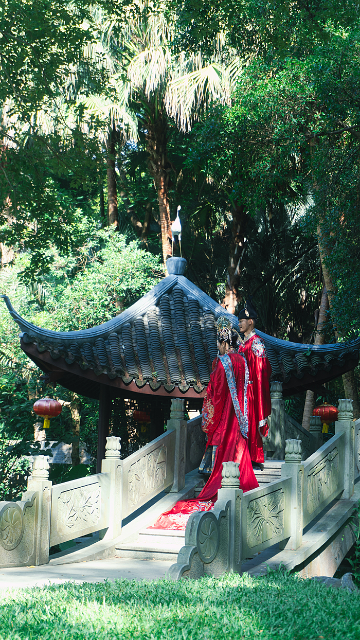 七夕想拍一组古装情侣照?深圳的古风爱好者多半会指路园博园。由东门入,步行数百米,便闯入一个集齐小桥流水、雷峰夕照、亭廊画桥、素墙花窗的雅韵江南。