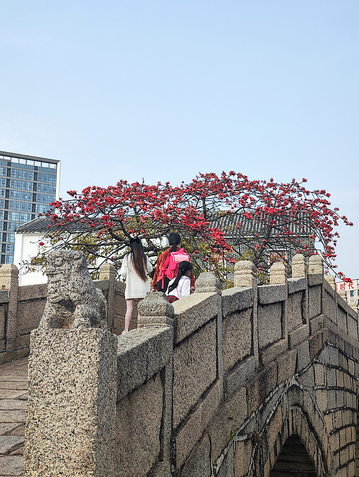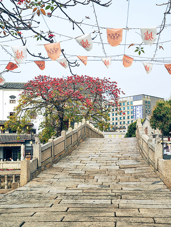 清平古墟内的永兴桥,是深圳仅存的一座古代三孔石拱桥,距今已有300多年历史。它全长50米,面宽3.4米,花岗岩条石砌成的桥身古朴典雅,横跨于潺潺流水之上。桥头柱子上,几只小石狮昂头张望,憨态可掬。
