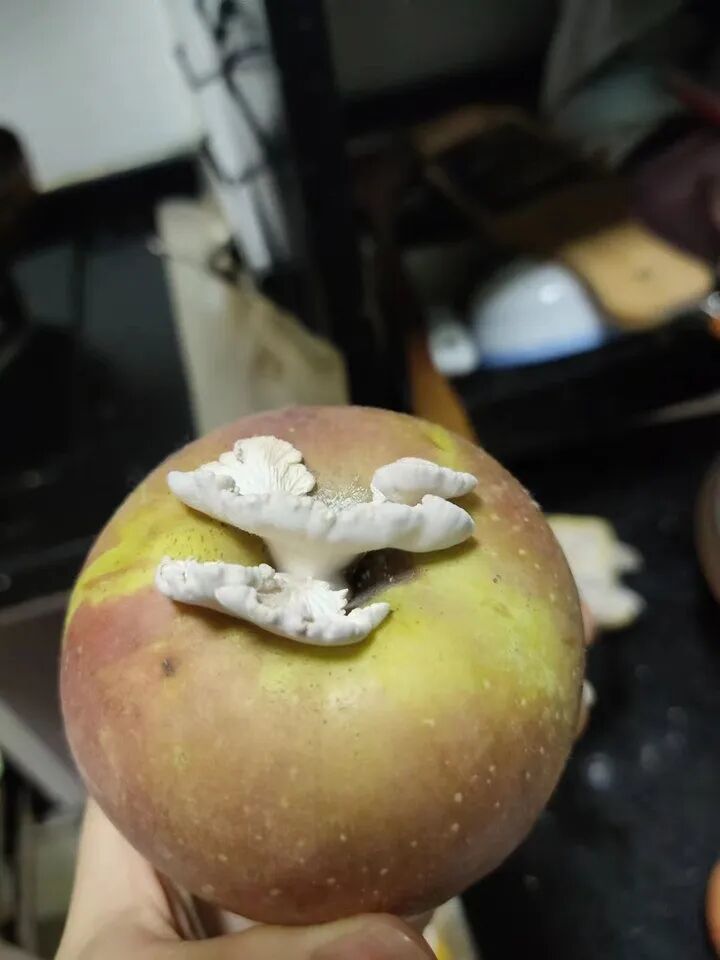 苹果上的白蘑菇。受访者供图