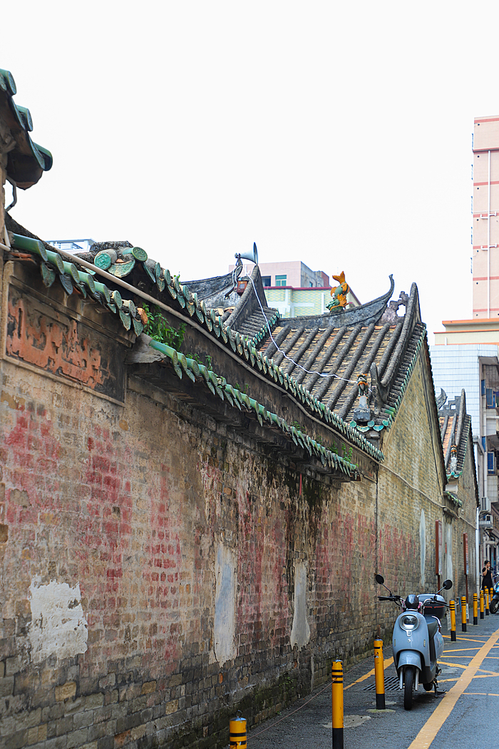 岁月的流转在青砖墙上留下斑驳的痕迹,青苔密布,每一处细节都在默默诉说着当年公明人的生活点滴。行走在这条老街上,仿佛时光倒流回到上世纪九十年代,时间在这里仿佛被悄然定格。
