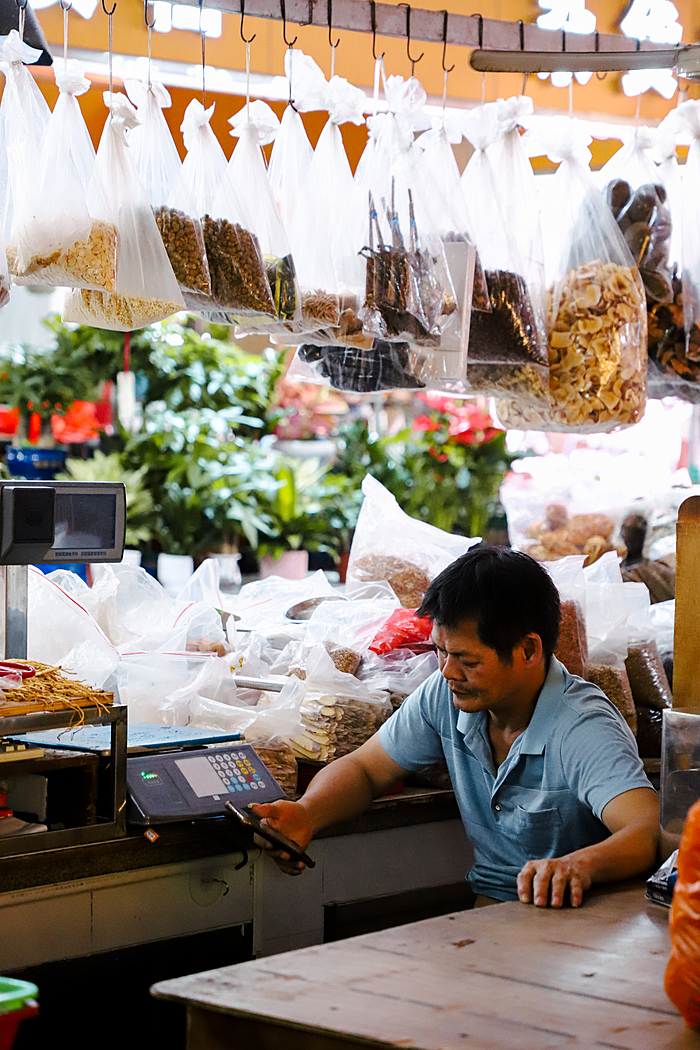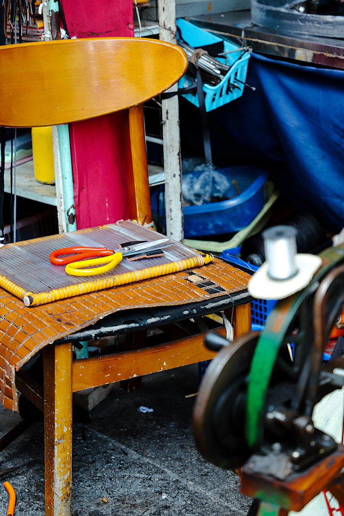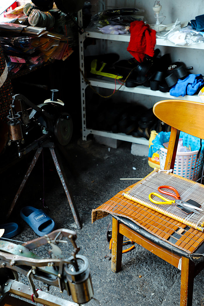 市场一角,还有现在很少见的“手工艺人”静静地忙碌着,复古的裁缝机咔嚓作响,手摇补鞋机哒哒作鸣,似乎在低声述说着往昔的记忆,带你穿越到那个手工艺人曾经繁忙的时代。