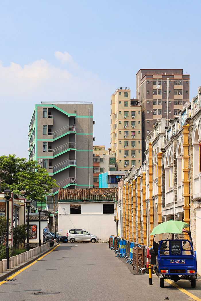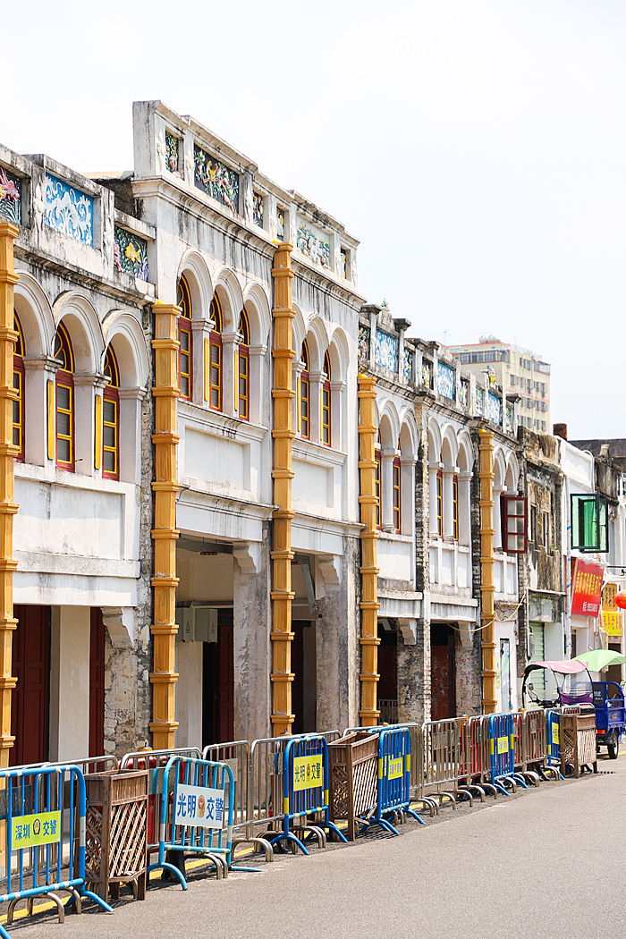 老街始建于1929年,虽全长不过200余米,却是“宝安区第一批不可移动文物保护点”(注:公明2007年从宝安区划归光明新区管辖)。这条老街上矗立着深圳现存唯一的骑楼,独特的骑楼式商铺建筑散发出浓浓的南洋风情,将西洋风格与东方古韵完美融合。