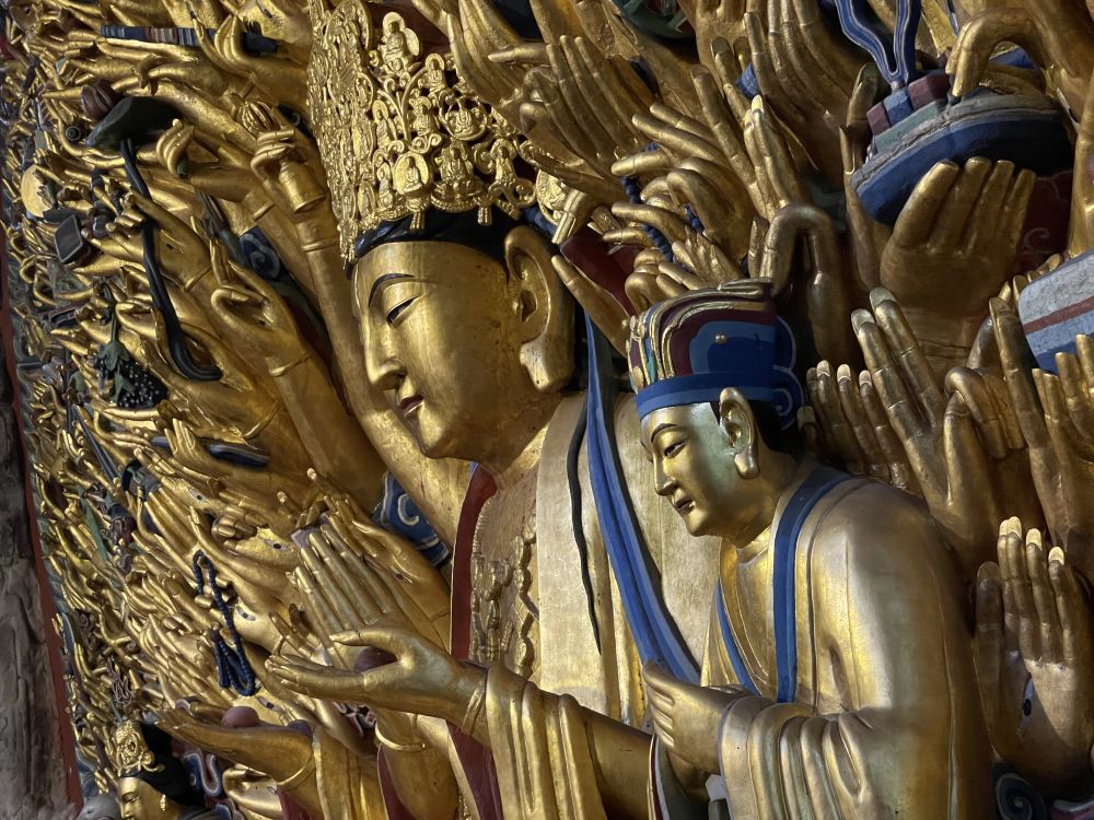 上图为重庆大足石刻中的千手观音像。图源:新华社