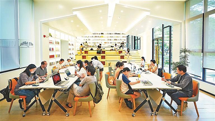 深圳还积极引导社会力量参与公共文化设施建设,精心打造群众家门口的高品质文化空间。深圳图书馆与前海管理局共建贸易主题特色分馆、与招商银行共建金融主题特色分馆;福田区新创建时尚美学艺术空间,建成开放全国首家青年主题文化馆福田“梦工场”;全市100多家集高颜值环境、高标准服务、高科技手段于一体的新型文化空间遍布城市各个角落,“智慧书房”“悠·图书馆”“南山书房”“城市书房”等新型公共文化空间成为新的城市文化名片。