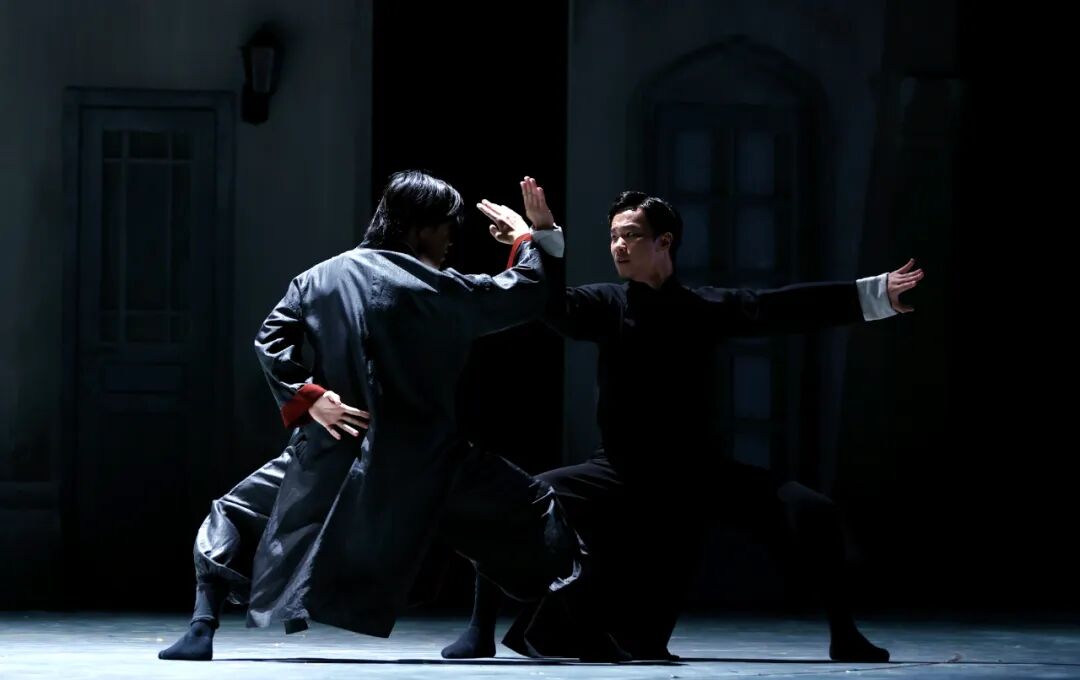 由于沙德勒之井剧院的剧场与国内剧场的“大舞台”在进深、宽度上有很大不同,当晚的演出,也是《咏春》主创团队为了此次英国首演准备的“特调版”。