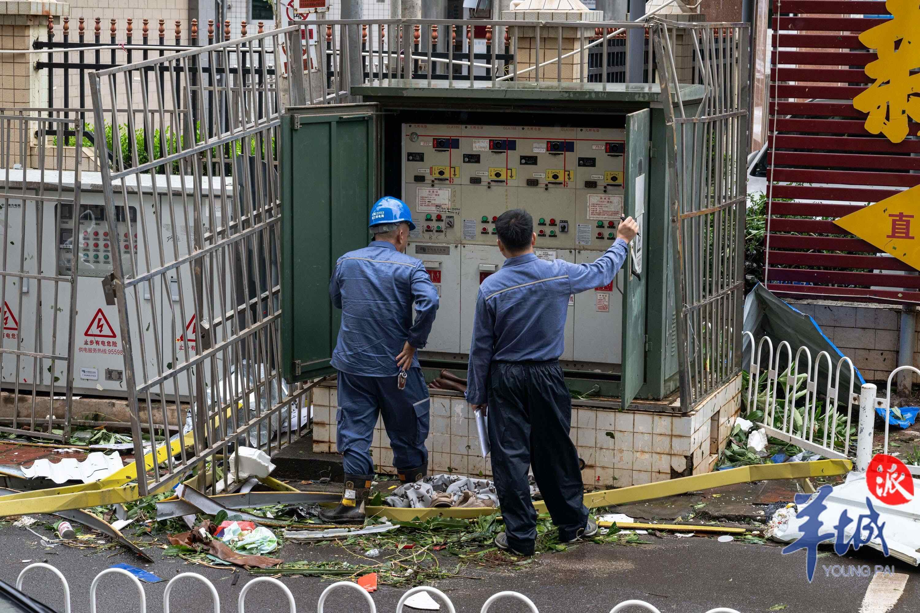 2024年9月7日上午,记者实地探访了徐闻县的街道景象。只见道路两旁,工作人员正紧锣密鼓地进行着清理障碍的工作,同时,供电部门的抢险救援车辆也在街道上频繁穿梭,争分夺秒地修复受损的电力设施,以期尽快恢复市民的正常生活用电。同时,徐闻县内的中国移动营业厅为市民提供手机充电,休息等服务。随着这些努力,市民们的生活秩序也在逐步回归正常。