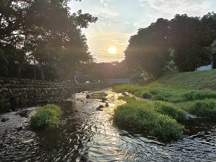 ▲临近日落时分,阳光洒在清澈的金龟河上。 深圳晚报记者 苏靖驹 摄