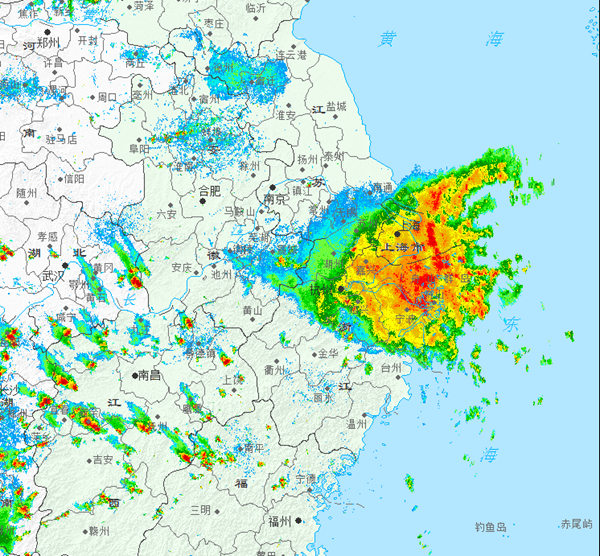 在热带低压的影响下,9月10日上海、浙江东北部出现了一大片橙色、红色的强降雨雷达回波。浙江局地降水强度大,普陀6小时累计降水量达到63.5毫米。