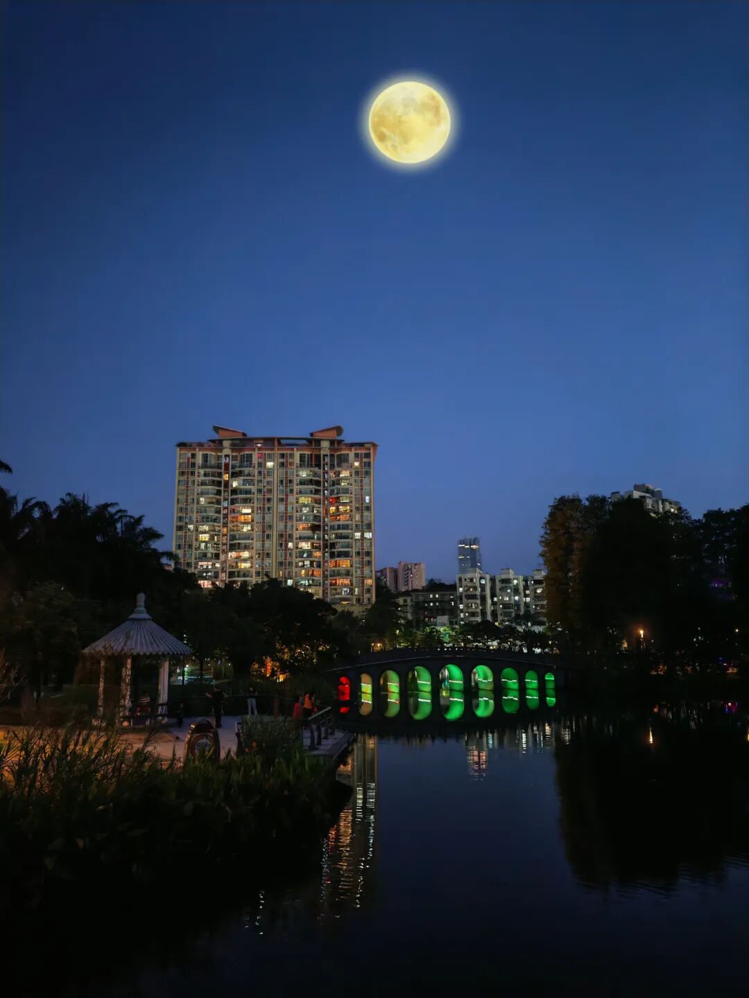 在中秋月圆夜到深圳湾公园赏月