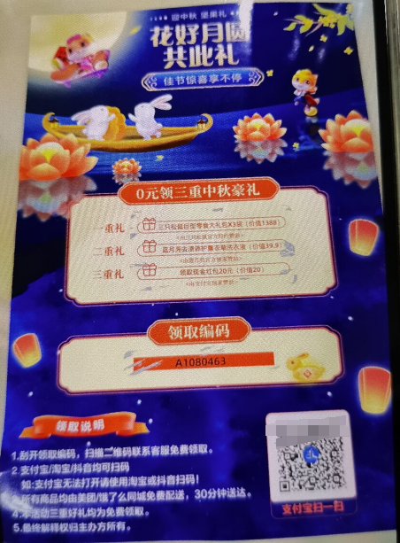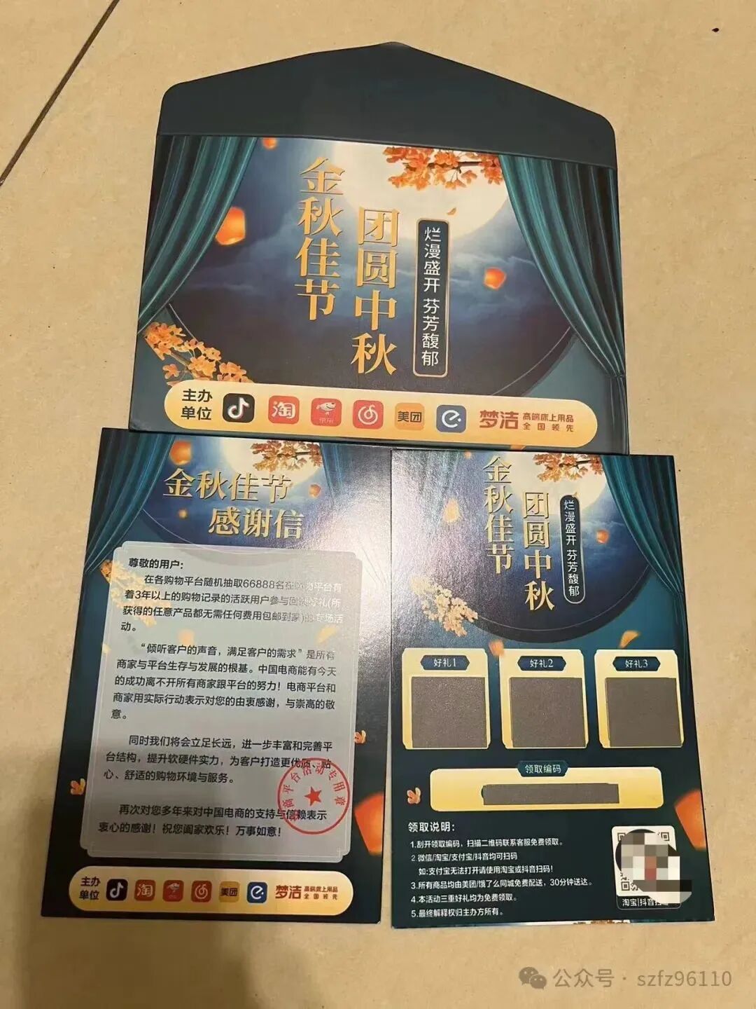 她收到一个快递包裹,里面竟是一张声称能领取零食、洗衣液、现金等三重豪礼的“中秋礼品卡”。