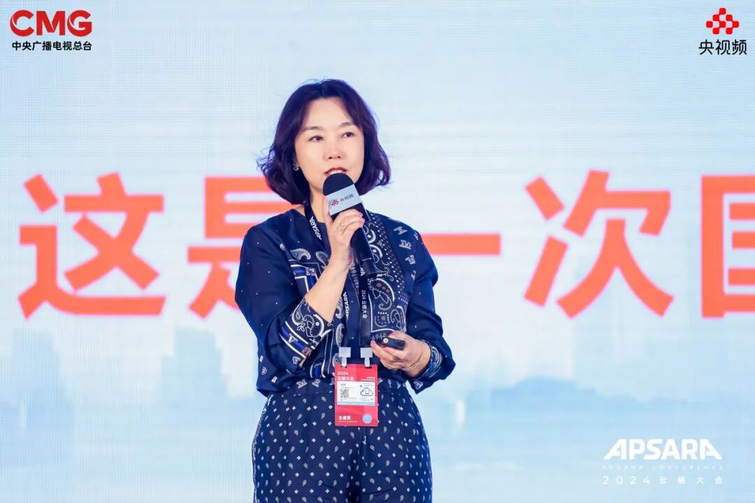 中央广播电视总台视听新媒体中心制片人、总导演田梅致辞,表示“在今天这样一个时代,很多人说这是第四次工业革命,总台有责任、有义务记录和见证这一历史时期,为未来的企业,寻找企业的未来,未来因AI更美好,AI因人而更美好。”