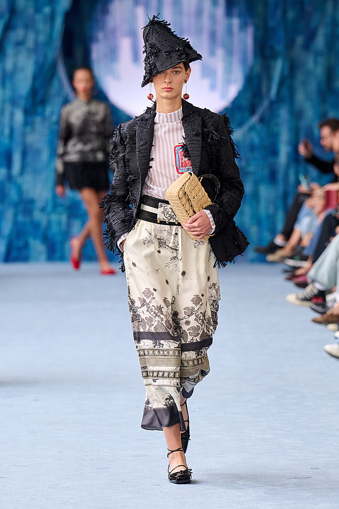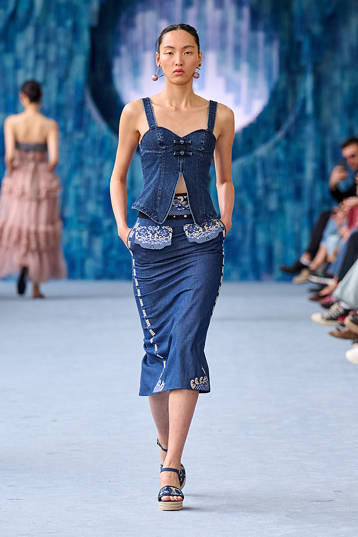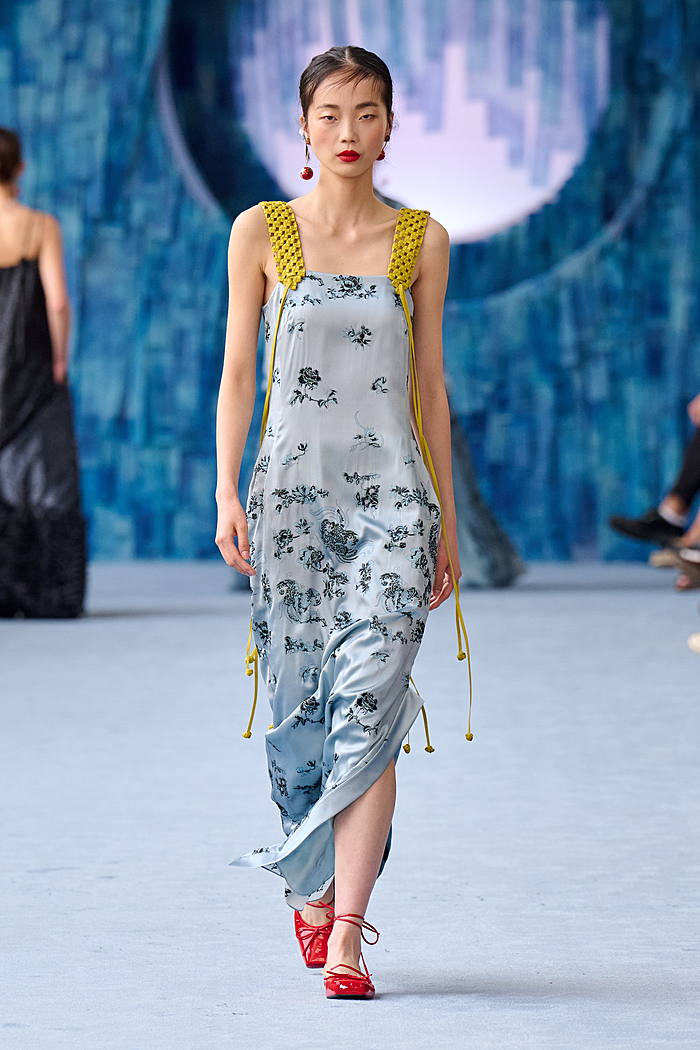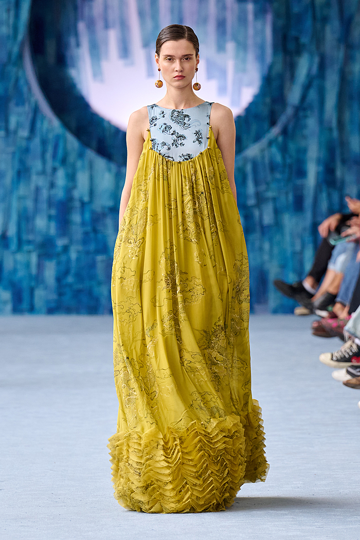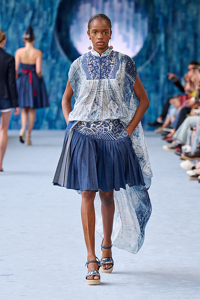 在细节之处,从海水江崖纹,到蝶戏牡丹图,再到苗族的蓝染工艺,无不体现了HUI对中华传统文化的传承与创新。通过现代工艺技法和传统工艺的融合,HUI创造出了独具魅力的时尚作品,展现了女性的优雅与自信。整个秀场弥漫着对女性力量的深刻思考,向世界展示了全球女性在时代变迁中的不断成长与进步。