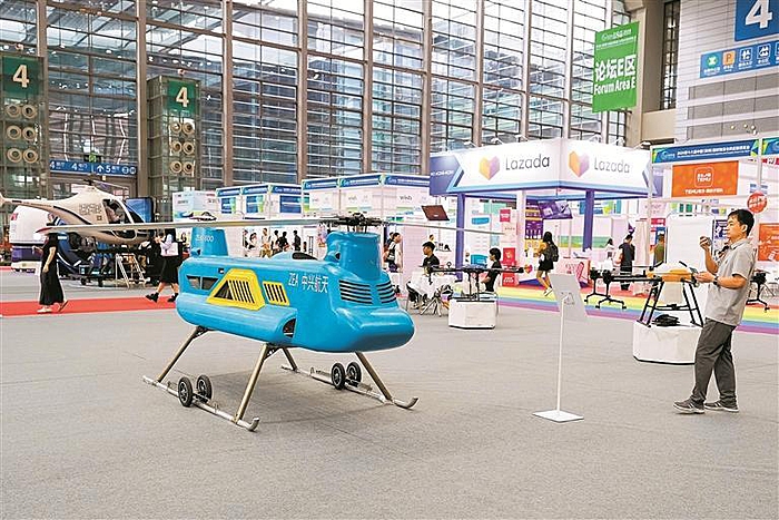 ▲机器人/无人驾驶展区展出的无人机。 深圳晚报记者 严文婷 摄