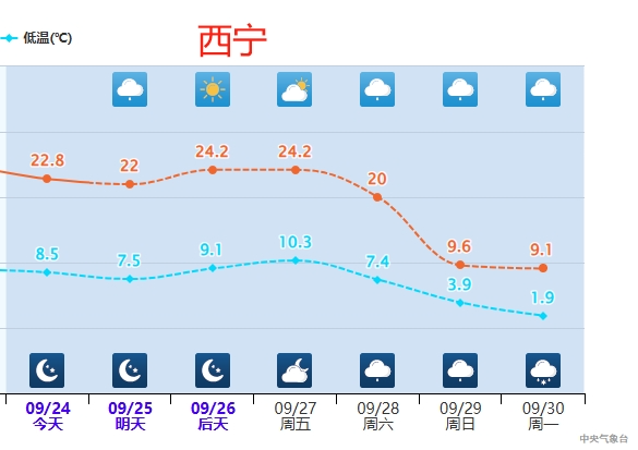 城市中,西宁27日最高气温还有24℃左右,29日降至10℃以下,30日至31日早晨最低气温更是直逼冰点,仿佛两天时间便“一脚跨入冬天”。而今年高温酷热突出的重庆,27日至29日还将连续三天重返高温,30日最高气温将降到27℃左右,可能会由此告别今年的高温季。