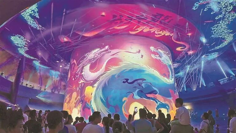 此外,海洋世界还重点打造了四大秀场,包括国内首创青蓝洞投影秀、高科技鲸豚剧场、海洋环保科普剧的欢乐剧场,以及展现人与自然和谐之美的海底剧场。