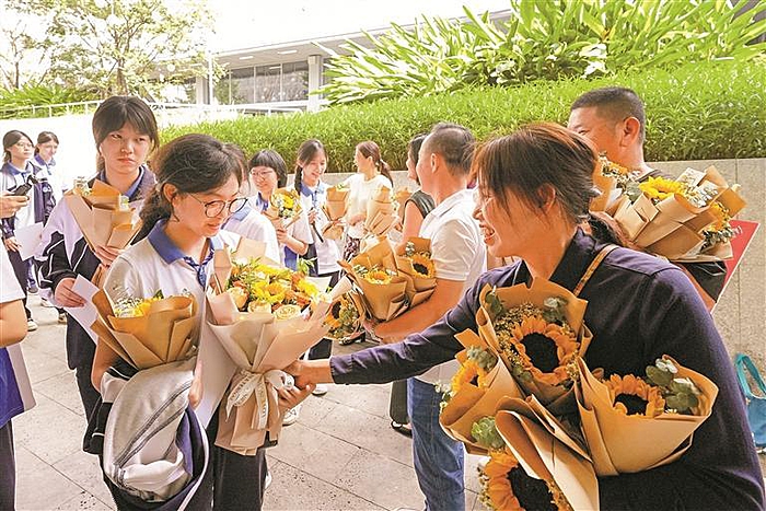 ▲家长为孩子的成人礼准备了鲜花。深圳晚报记者 严文婷 摄
