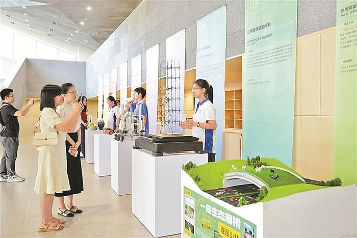 ▲学生代表在主题展览现场讲解。深圳晚报记者 严文婷 摄
