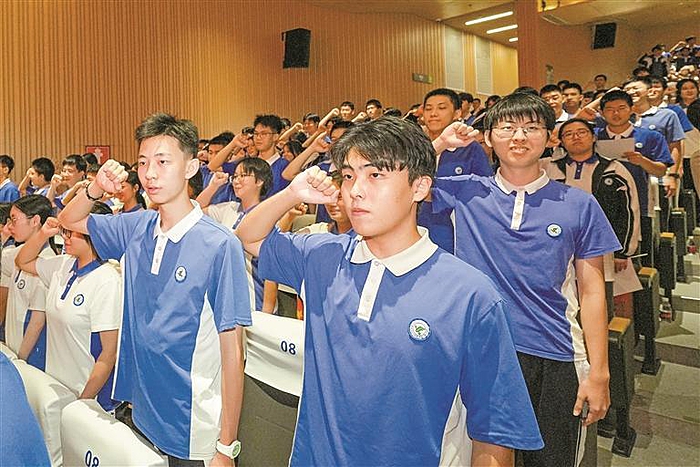 ▲高三学子举起右手,宣誓明志。深圳晚报记者 严文婷 摄