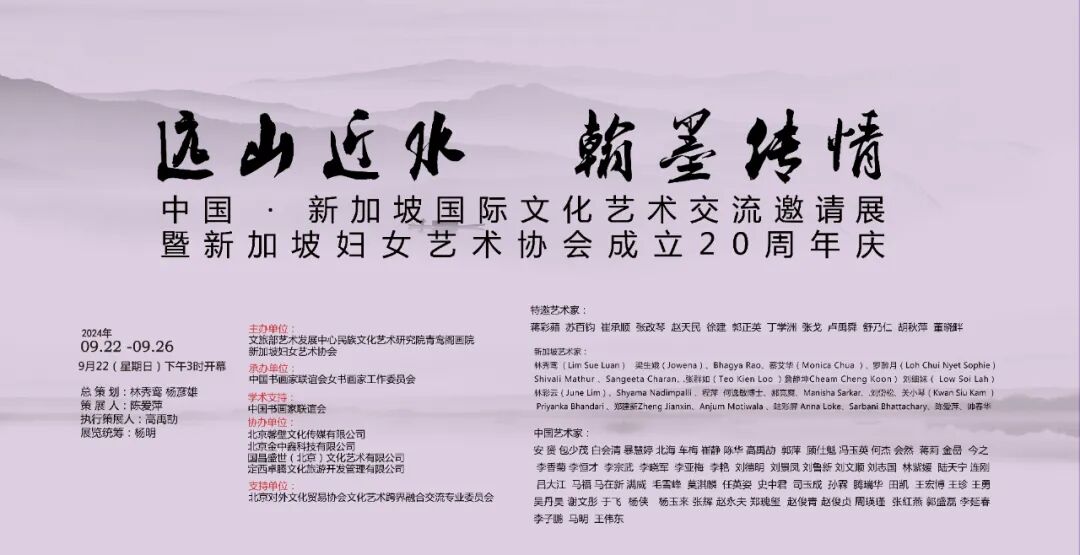 9月22日,“远山近水•翰墨传情”中国•新加坡国际艺术交流展在北京崇德堂博物馆开幕,展览由中国书画家联谊会学术指导,文旅部艺术发展中心民族文化艺术研究院、新加坡妇女艺术协会主办,中国书画家联谊会女书画家工作委员会承办,北京馨壁文化传媒有限公司、国昌盛世(北京)文化艺术有限公司、北京金中鑫科技有限公司、定西卓腾文化旅游开发管理有限公司协办。