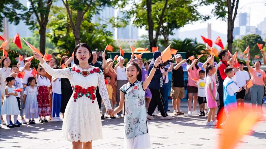 “国是我的国,家是我的家。我爱我的国,我爱我的家......”大家被这熟悉的旋律和深情的歌声所打动,纷纷驻足欣赏,随着节奏挥舞手中的五星红旗、轻声合唱。
