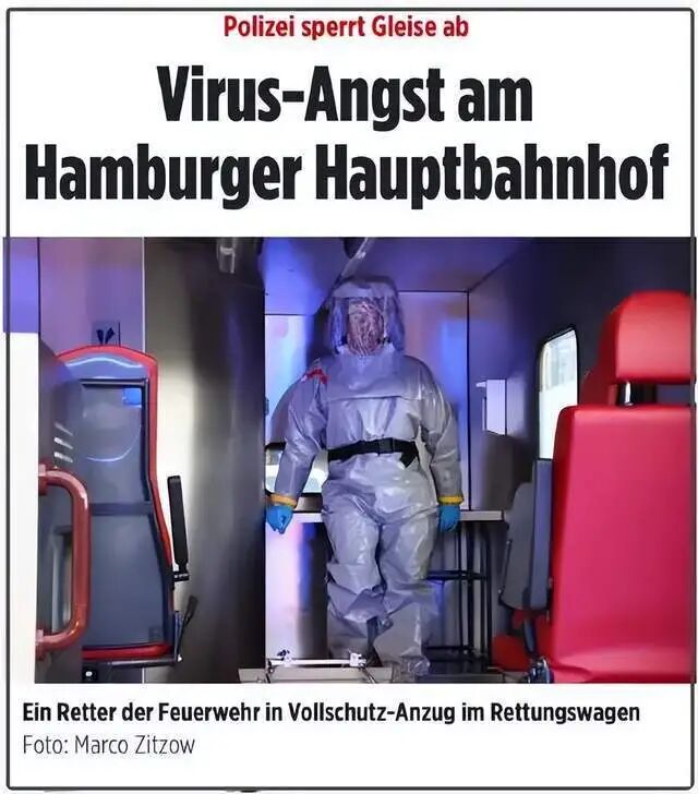汉堡主火车站随即发出重大紧急警报,联邦警察封锁车站数小时,7号和8号轨道暂停使用,乘客不允许离开站台。警方对载有约200名乘客的列车进行密切接触者排查。两名疑似患者被身着全套防护服的救援人员送往埃彭多夫大学医院(UKE),该医院专门研究热带疾病。