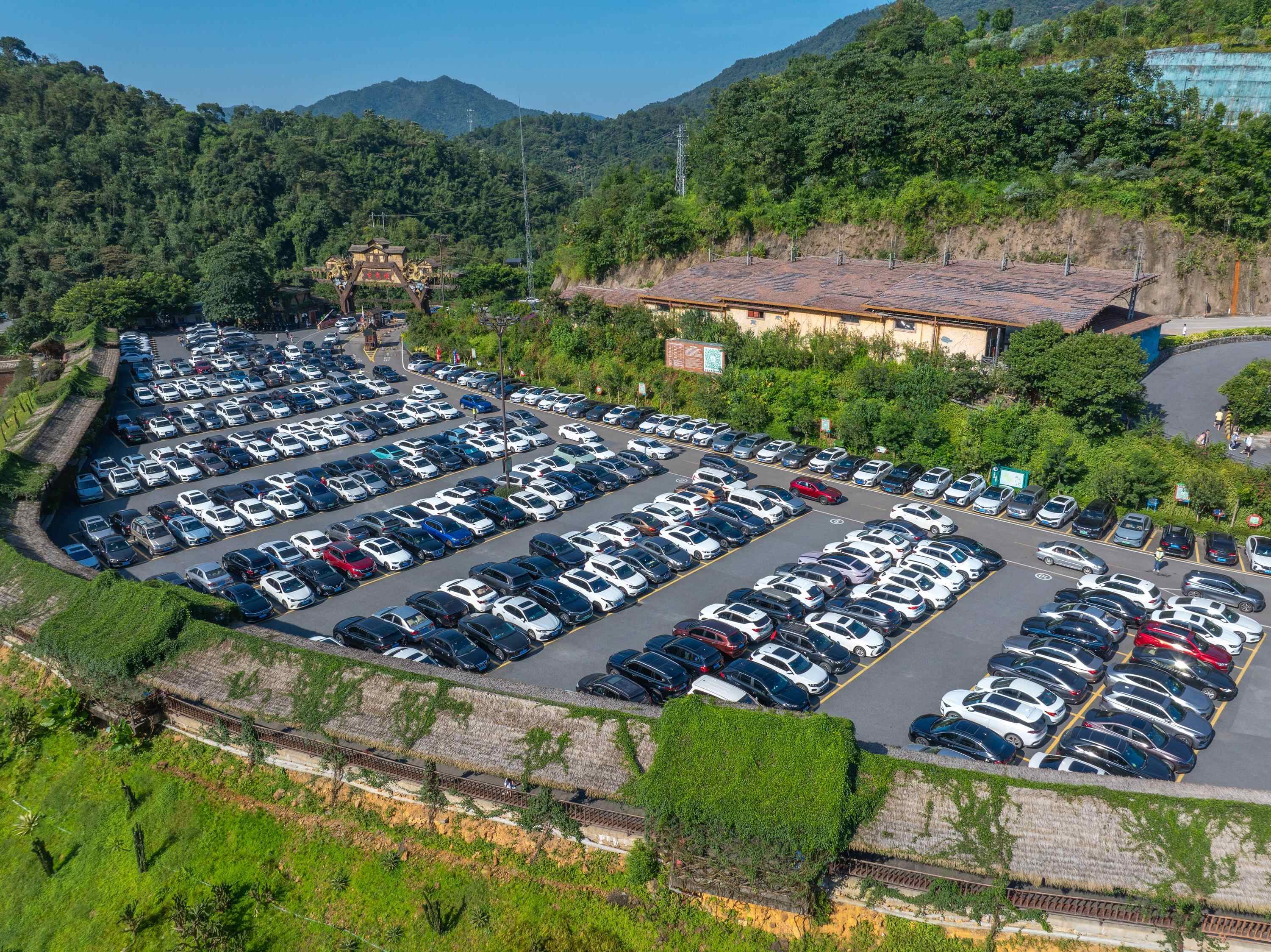 清远古龙峡停车场停满了自驾游车辆 景区提供