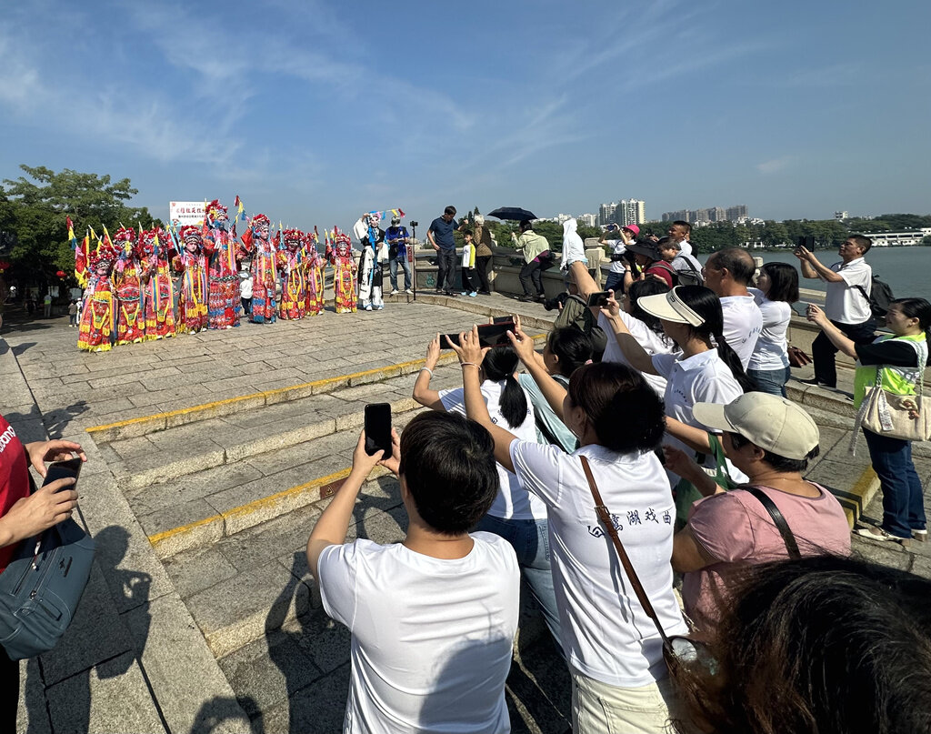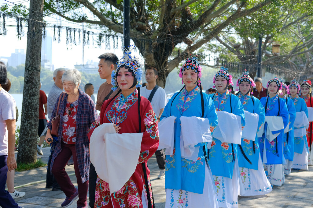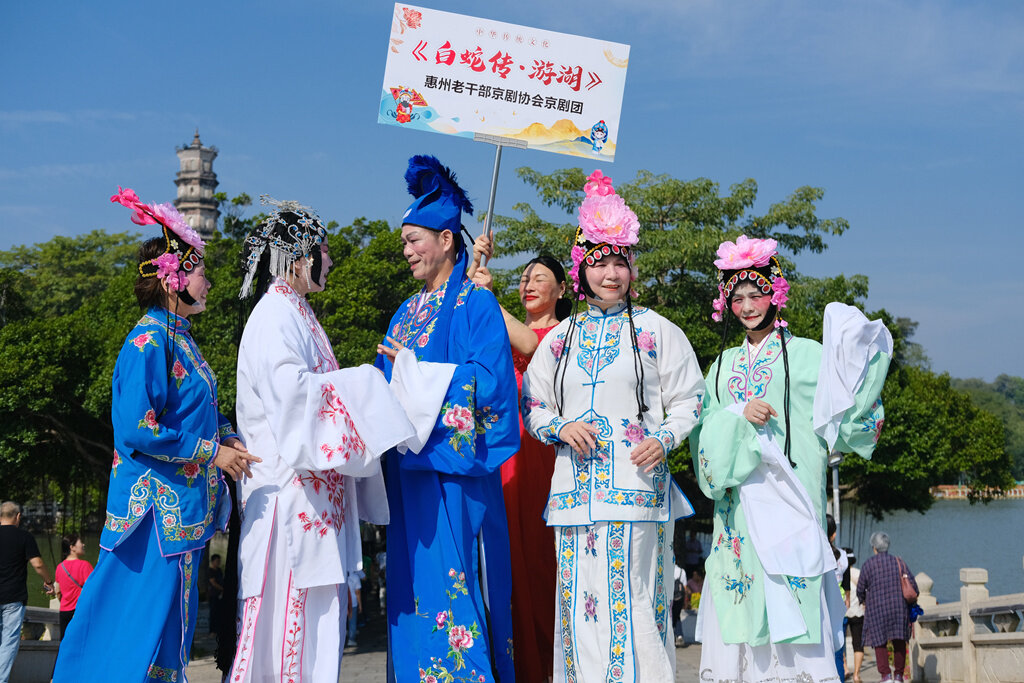 来自深圳的游客刘女士第一次来到惠州西湖景区游玩,偶遇京剧秀深感惊喜。在她看来,每个方队各美其美,从诙谐可爱的村姑、牧童,到英姿飒爽的杨门女将、穆桂英,再到雍容华贵的杨贵妃,让人目不暇接。“来惠州玩,这场秀就很值了。”