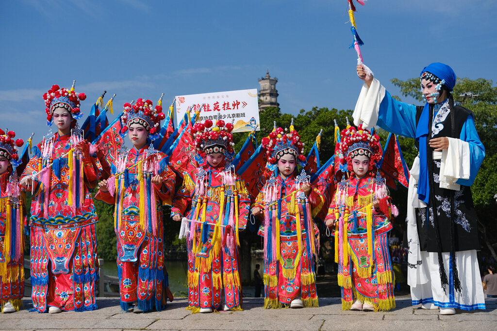 小小穆桂英眉眼大气,英姿飒爽;《白蛇传》水袖飘飘,身姿动人……随着巡游开始,生、旦、净、末、丑五大行当粉墨登场。演员们身着华丽戏服,尽显京剧艺术的韵味与风华。