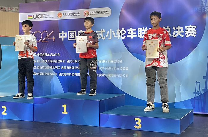 ▲10月27日,刘浩冉(中)在全国小轮车联赛总决赛中荣获冠军,上台领奖