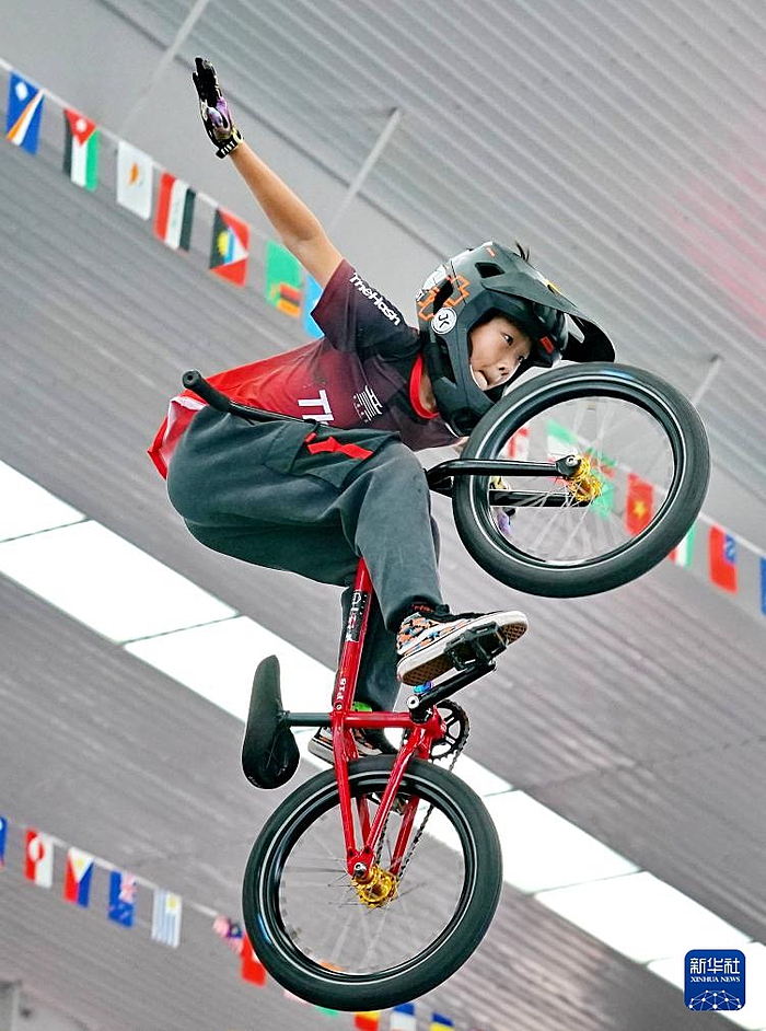还记得在巴黎奥运会女子自由式小轮车决赛上,中国选手邓雅文在空中上演的“神龙摆尾”的动作吗?这一次,刘浩冉也凭借着“神龙摆尾”和“鱼跃龙门”等高难度动作,赢得了现场观众的热烈掌声。最终,他以领先澳大利亚运动员5分的优势,夺得冠军。