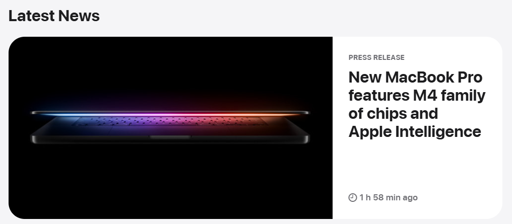 10月30日,苹果在官网发布新一代MacBook Pro笔记本电脑,全系列搭载M4系列芯片(M4、M4 Pro和M4 Max),令其性能得到大幅增强。