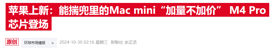 新闻稿提到,搭载M4芯片的MacBook Pro是创业者、学生、创作者等的理想选择;M4 Pro适合科研人员、开发者、工程师、专业创意人士等;M4 Max则为数据科学家、3D 艺术家、作曲家等专业人士设计。