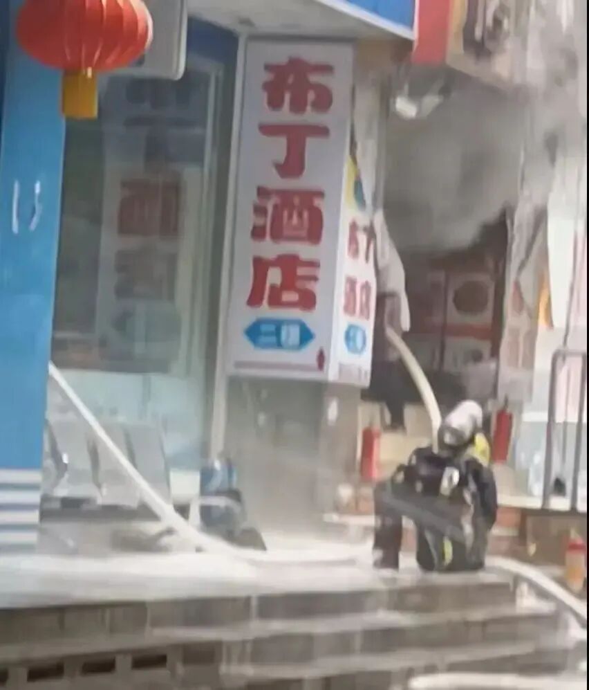 视频显示,该临街商铺挂着多个牌子,其中有“布丁酒店”字样。记者尝试拨通电话,但对方无人回应,只能听到消防车的警笛。