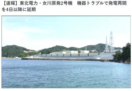 据日本TBS新闻网报道,日本东北电力公司宣布,于日前重启的女川核电站2号机组原计划于当地时间11月3日开始发电和输电,但在测试过程中,用于测定反应堆中子量的仪器停止工作,当日发电计划延期至11月4日之后。
