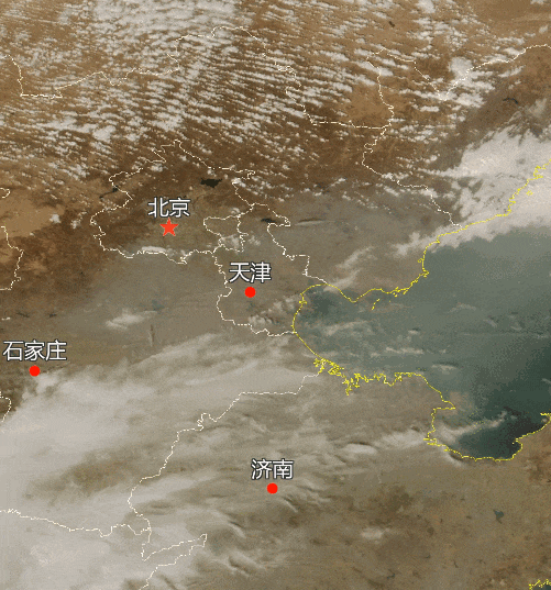动图看11月3日下午冷空气驱散雾和霾过程,北京、天津和石家庄能见度都有明显改善。