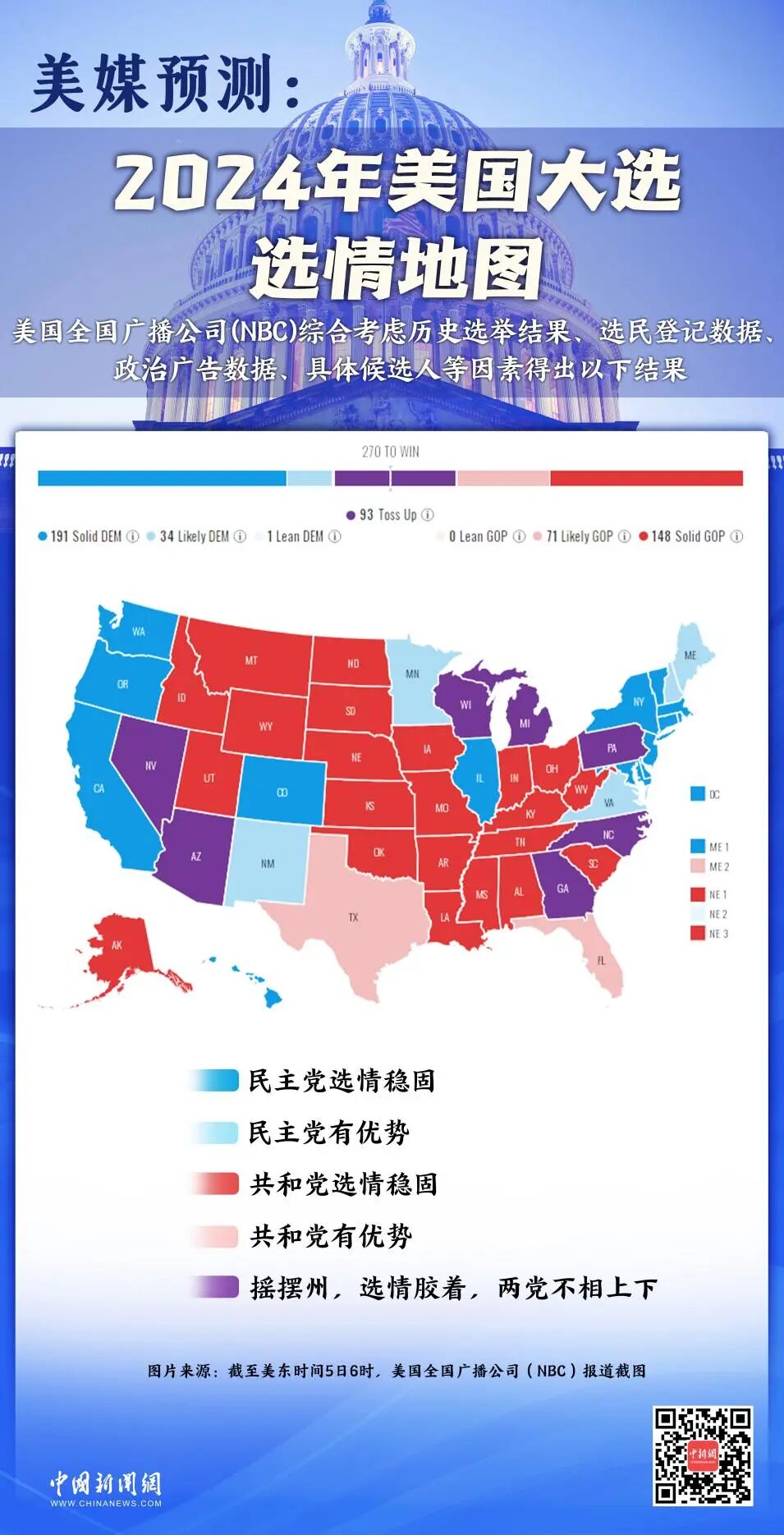 美媒普遍认为,2024年大选是美国近年来选情最为胶着的总统选举。所有的目光都集中在亚利桑那、佐治亚、密歇根、内华达、北卡罗来纳、宾夕法尼亚和威斯康星这七大摇摆州。