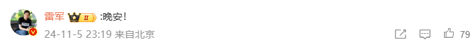 随后,雷军本人也在该条微博下留言称:“晚安。”