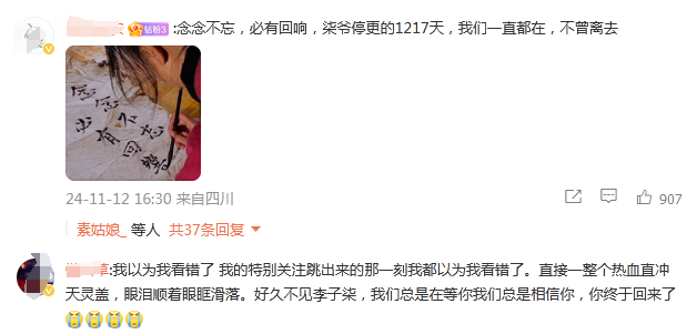 粉丝在视频下面纷纷留言,称李子柒“终于回来了”↓↓
