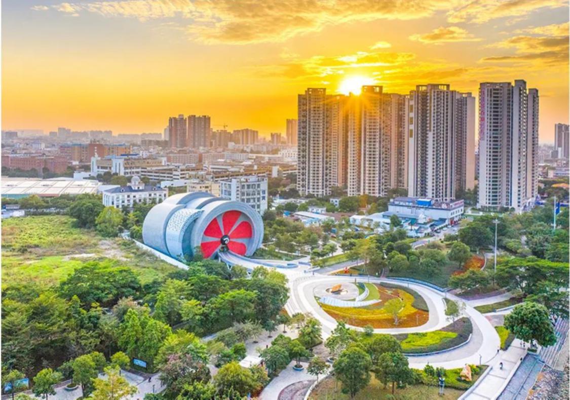 顺德工业发展馆位于德胜河南岸,外观呈现为“飞机发动机”的造型,演绎顺德工业飞速发展的精髓。展馆围绕顺德工业发展主题,集历史博物、展陈、科技、创意、景观休闲、科普教育、体验交流等为一体,是展示顺德工业经济探路高质量发展的重要窗口。