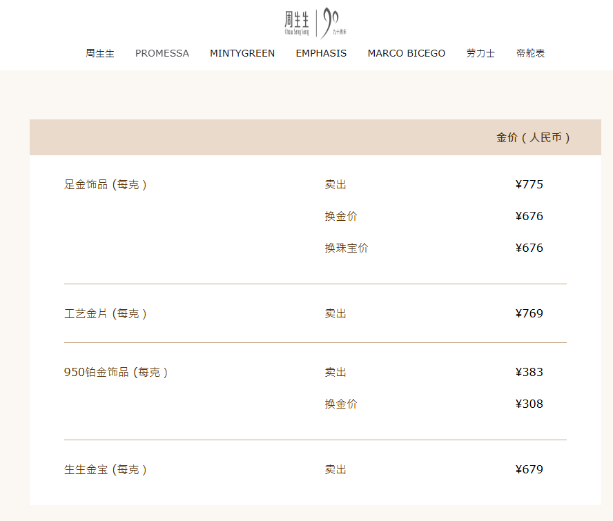 11月15日,记者查询周大福和周生生官网,足金饰品报价为775元/克。相比半月前的高点,黄金饰品每克降价近30元。