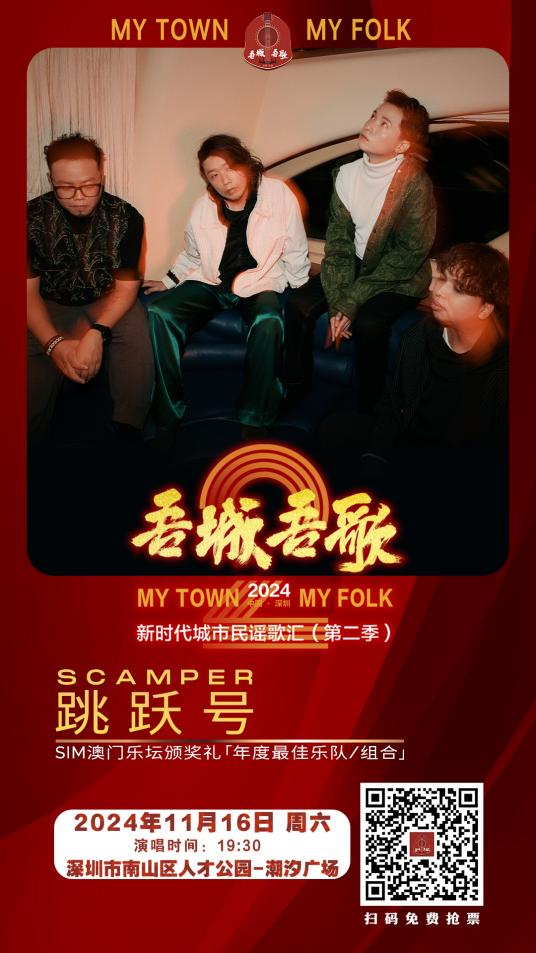 来自中国澳门的「SCAMPER」乐团,充满阳光性格和爆发力,极具舞台魅力的他们,现场演出绝对会让观众难以忘怀。