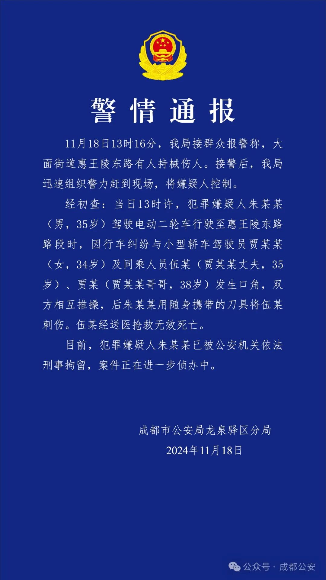 2024年11月18日,成都市公安局龙泉驿区分局发布警情通报: