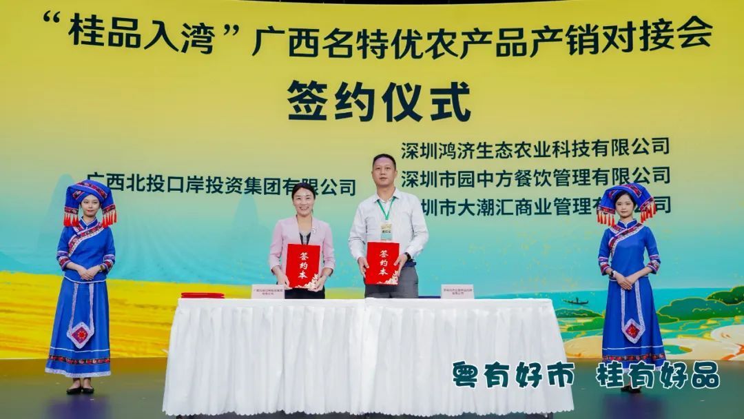 为进一步推动粤桂协作深入开展,促进广西名特优农产品精准对接大湾区市场,推动粤桂两地产销投合作,一场主题为“粤有好市,桂有好品”的“桂品入湾”广西名特优农产品产销对接会,于11月19日盛大举行。产销对接会喜结硕果,粤桂两地企业农产品集采合同金额达5500万元,招商引资意向达6亿元。