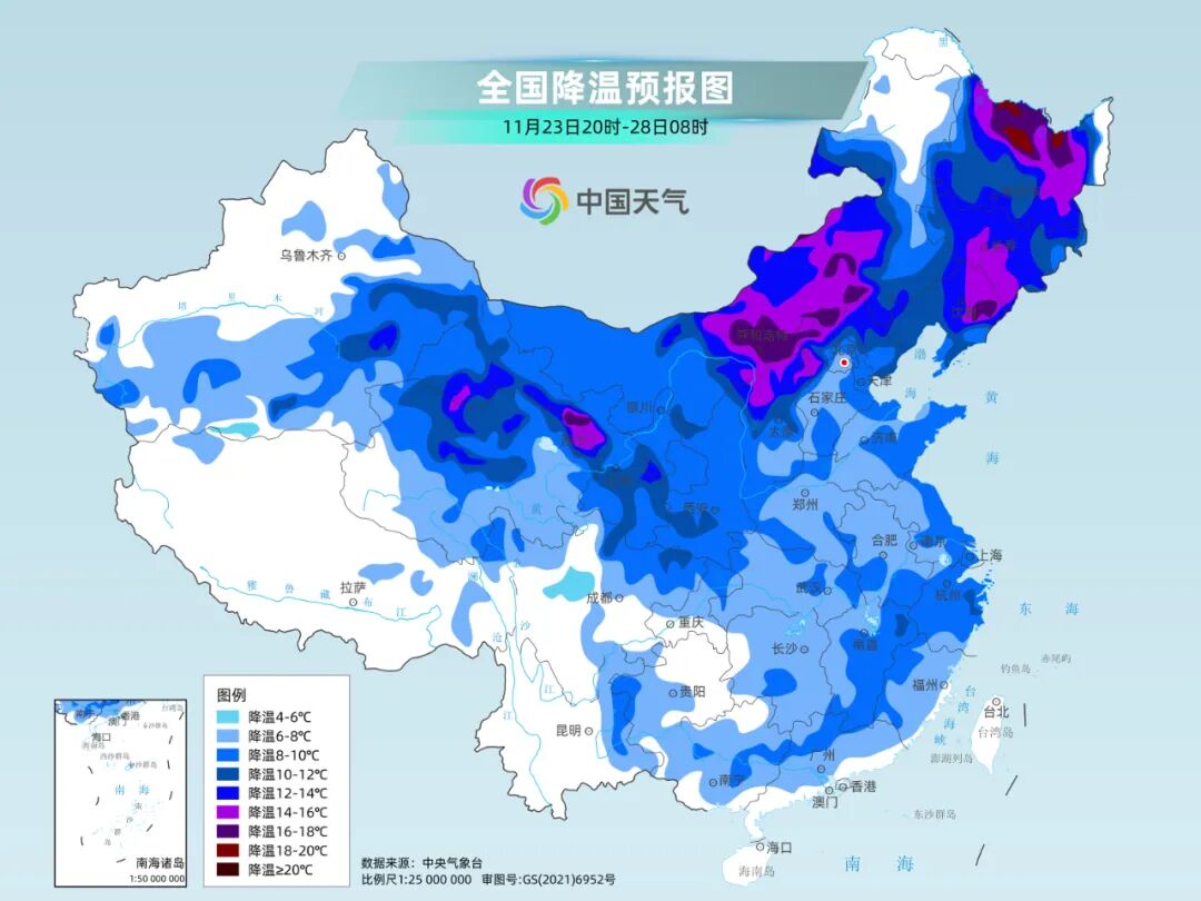 接下来几天,寒潮将步步南下,中国气象局已启动四级应急响应。再划下关注重点:一是,南北方降温力度都大,11月下旬将出现冷暖逆转;其次,暖湿气流也比较强,水汽充足,不仅会带来寒湿体感,制造的雨雪范围也非常广泛,北方局地降雪或存在极端性。