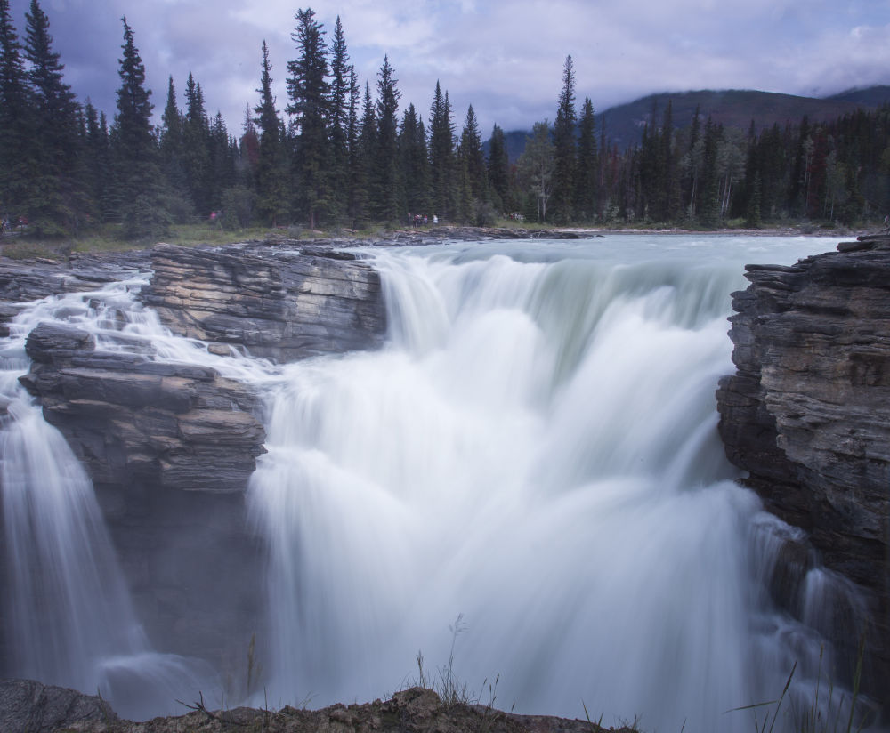这是在加拿大落基山脉贾斯珀国家公园拍摄的阿萨巴斯卡瀑布(2018年7月23日摄)。新华社发(邹峥摄)