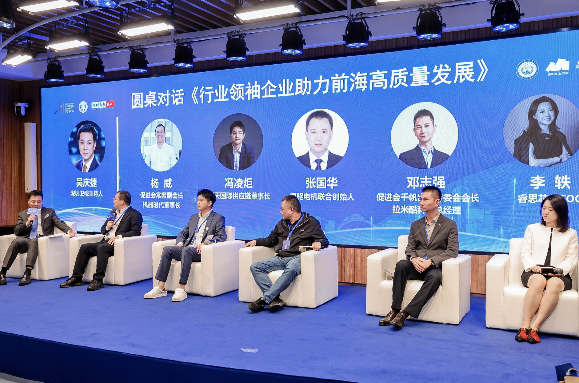 在第六届“书香圳好”深圳行业领袖100强颁奖礼上,获奖企业代表和青年企业家代表围绕如何以技术创新引领行业持续突围,共论扎根前海实现高质量发展。深圳市行业领袖促进会常务副会长、深圳市机器时代科技有限公司董事长杨威,诚天国际供应链(深圳)有限公司董事长冯凌炬,深圳恒驱电机有限公司联合创始人张国华,深圳拉米酷科技有限公司总经理邓志强,睿思芯科(深圳)技术有限公司COO李轶等展开圆桌对话。