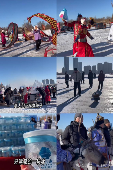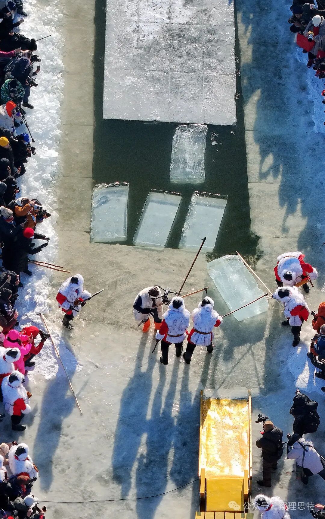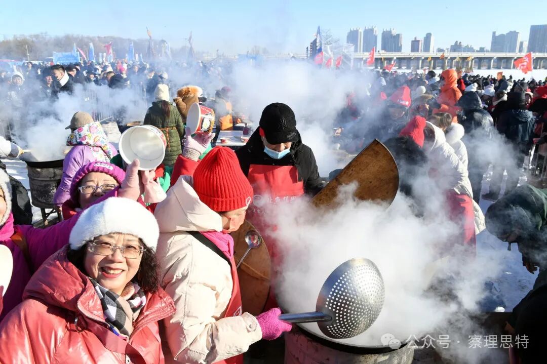 从网友拍摄的往届采冰节视频更是可以看到,现场气氛热闹非凡,充满欢声笑语,活动丰富多彩。有尝到热气腾腾的饺子时的满足,有拿到寓意“取头冰,祛百病”的首日冰时的惊喜,也有赢了游戏的兴奋……市民游客们的脸上洋溢着笑容,银装素裹的冰天雪地里弥漫着一片温暖、祥和与喜悦。